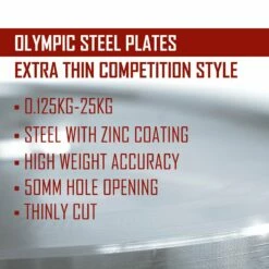 Die Hantelaufnahme der Stahlscheiben passt problemlos auf handelsübliche olympische Langhantelstangen. Die verzinkte Beschichtung verleiht dem Stahl zusätzlichen Schutz und Widerstandsfähigkeit, um einen langen und zuverlässigen Gebrauch zu gewährleisten.