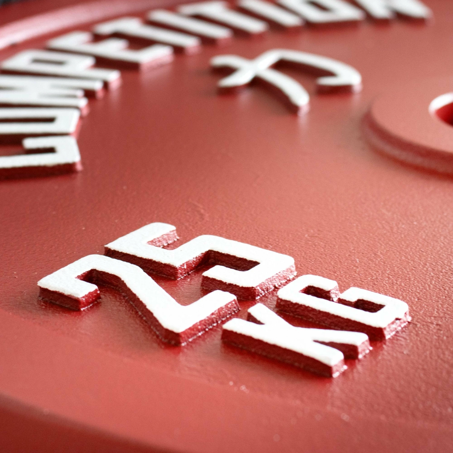 Unsere kalibrierten Kraftdreikampfscheiben bieten maximale Genauigkeit bei der Beladung, egal ob im Training oder beim Wettkampf. Auf der Rückseite der Hantelscheiben wird mit je zwei Stiften fein-kalibriert, um auf das exakte Gewicht innerhalb von +/-10gr der jeweiligen Scheibe zu kommen. Dadurch haben die Hantelscheiben ein maximales Maß an Genauigkeit denn darauf kommt es an; darauf kann sich der Athlet beim Wettkampf und im Training verlassen. Genau wie ihr wollen wir ganz genau wissen, welche Lasten wir bewegen und haben daher lange an unseren kalibrierten Hantelscheiben gefeilt. Jetzt sind sie da und wir sind stolz, euch endlich Scheiben anbieten zu können, die das Maximale an Präzision und Qualität mitbringen.