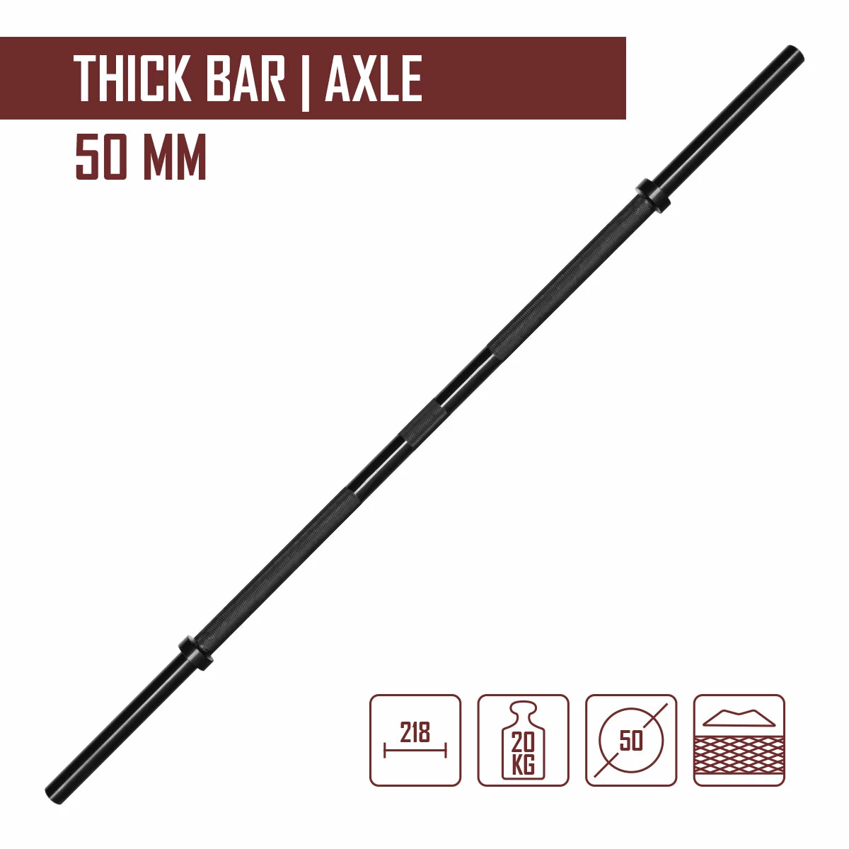Unsere 50mm dicke Axle mit einer Länge von 2,1 m ist für das Strongman- und Krafttraining jeden Niveaus unerlässlich. Diese Langhantel ist ideal, um die Griffkraft zu trainieren, lässt sich jedoch auch für eine Vielzahl anderer Übungen bestens einsetzen.