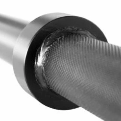Die Hantelstange verfügt über eine beidseitige Rändelung sowie eine mittlere Rändelung für Kniebeugen.