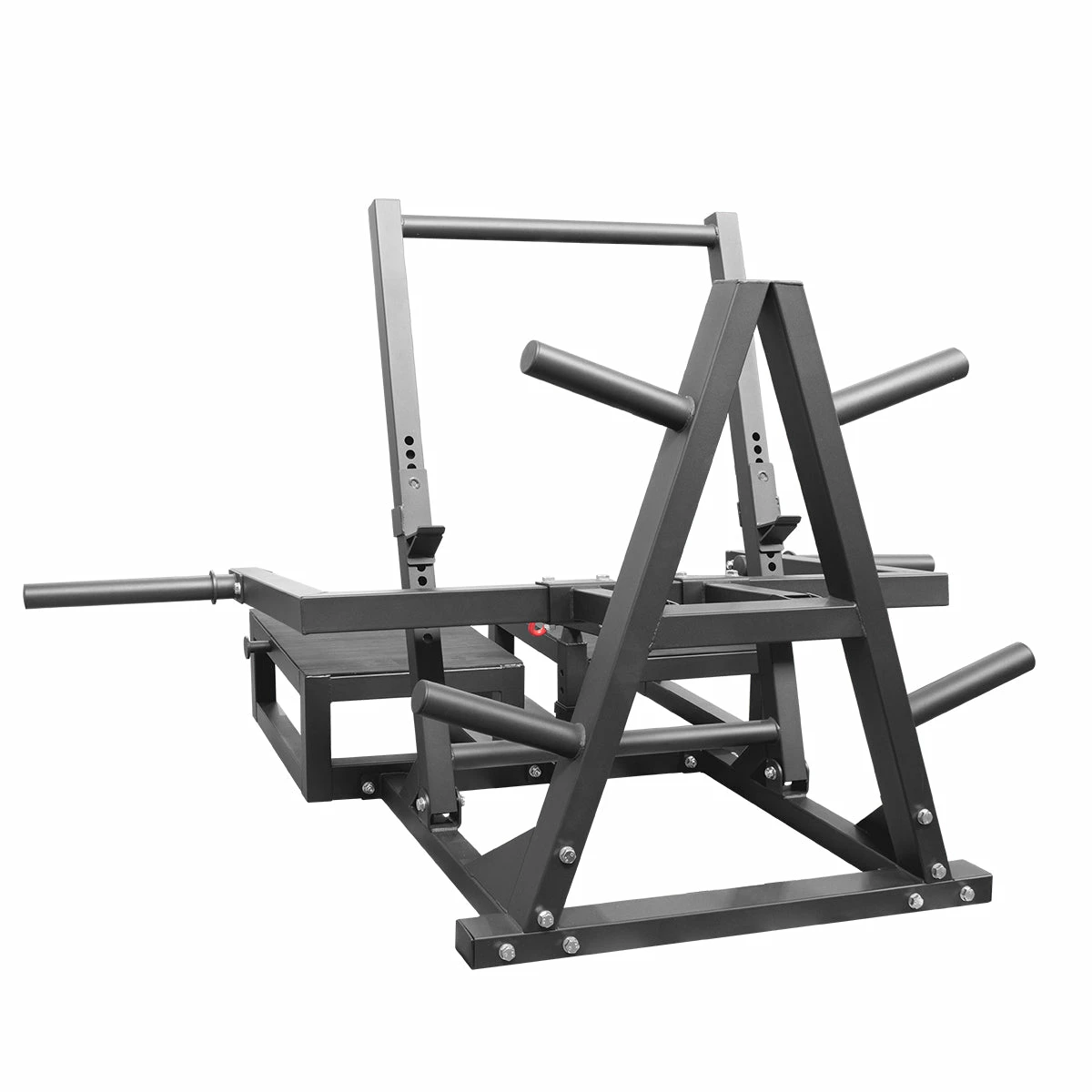 Scheibenaufnahmen von je 41cm auf jeder Seite bieten ausreichend Platz für ein hohes Trainingsgewicht von bis zu 400 kg. Aber achte darauf, dich langsam zu steigern, denn selbst geringere Lasten werden deine Beine direkt vor eine echte Herausforderung stellen. Wenn du die Dynamik der absinkenden Bewegungsphase verändern möchtest, nutze die 4,5cm Stifte/Band Pegs, um Resistance Bands zu befestigen, um den Widerstand zu erhöhen.