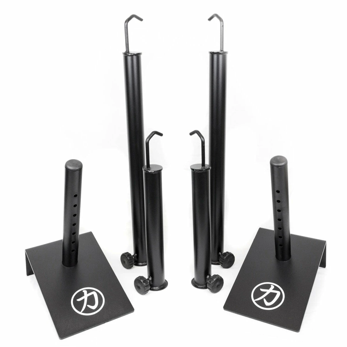 Ihr könnt also einfach Gewichte aufladen und die Höhe, je nach Übung und Bedarf, einstellen. Sobald ihr den Boden berührt, kippen die zusätzlichen Gewichte und ihr könnt die Arme/Beine wieder strecken, was mit dem vorherigen Gewicht nicht möglich gewesen wäre.