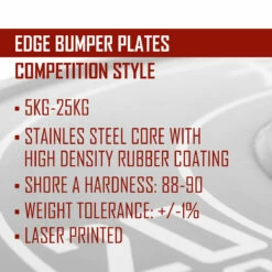 Die Edge Bumper Plates wurden nach denselben Qualitätsspezifikationen wie unsere Competition Bumper entwickelt und bieten eine enorme Vielseitigkeit zu einem vernünftigen Preis.