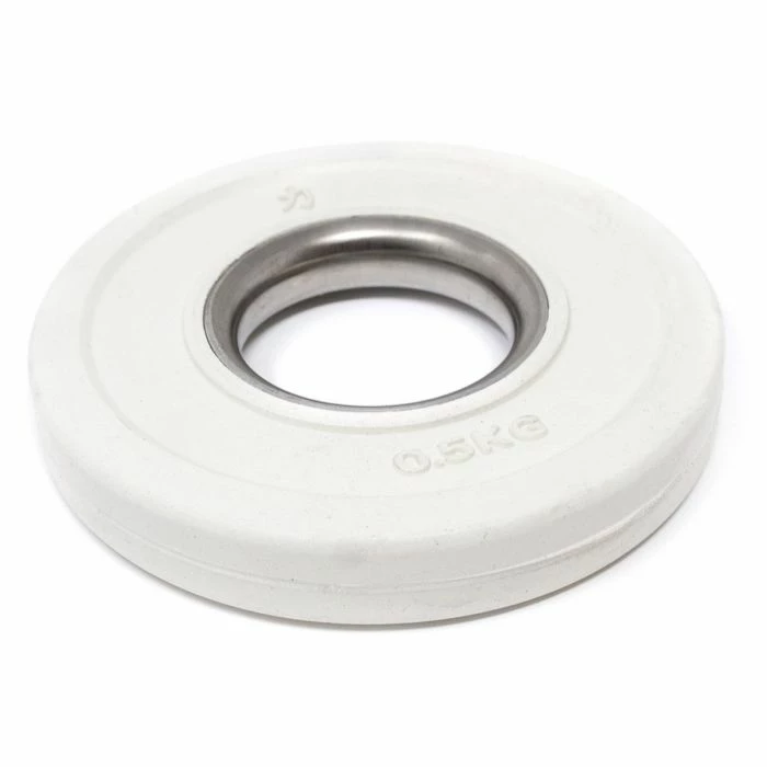 Der Stahlring der Hantelaufnahme macht das Laden zu einer reibungslosen Sache. Diese Scheiben sind ideal für olympische Langhanteln mit einer Scheibenaufnahme von 50mm geeignet und entsprechen den IWF/BVDG-Richtlinien. Steigerungen, wie im olympischen Gewichtheben üblich, ab mindestens 1kg (2×0,5kg) bis hin zu den „kleinen Roten“ von je 2,5kg sind mit dem Set abgedeckt. Diese kleinen Hantelscheiben, häufig auch fractional plates oder auch change plates genannt, haben in diesem Set ein Gesamtgewicht von 15kg.