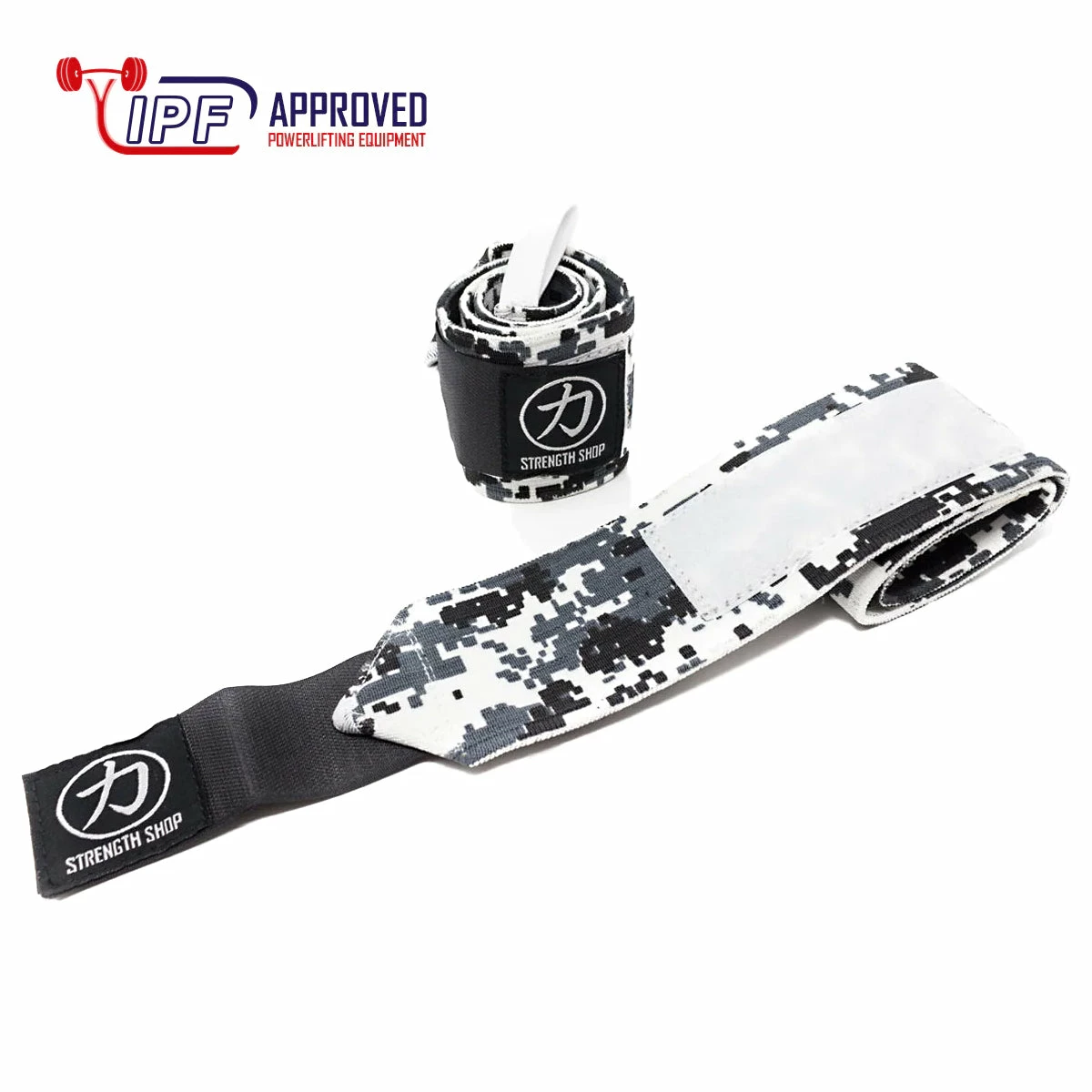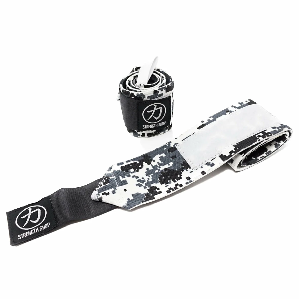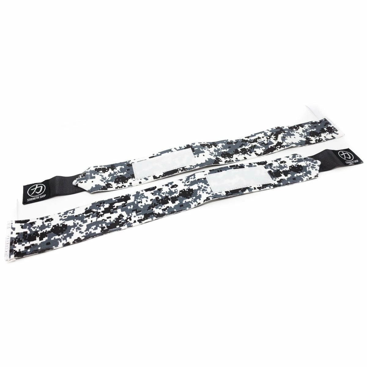 Strengthshop feste digital camo Handgelenkbandagen, 60 cm lang. Diese Bandagen haben die selbe Stärke wie unsere beliebten schwarz-gelben Modelle.