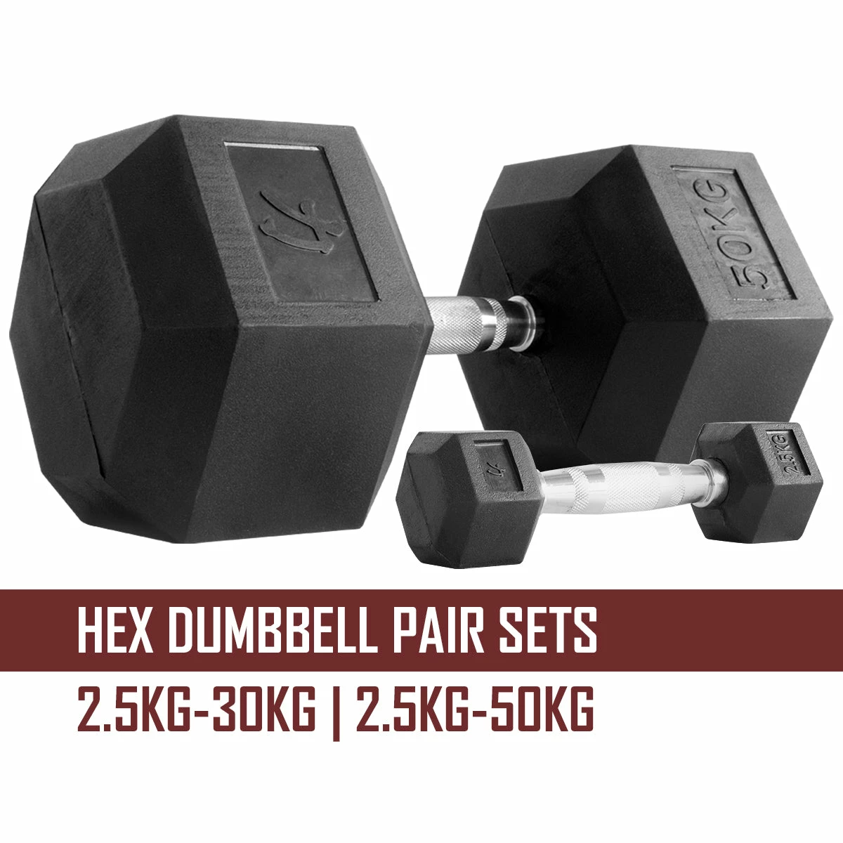 Unser gummiertes Hex Kurzhantelset besteht aus je einem Paar Kurzhanteln von 2,5kg bis 30kg in 2,5 kg-Schritten. Das bietet viel Flexibilität für die Trainingsgestaltung. Die kompakten Stahl- und Gummielemente bieten eine hohe Strapazierfähigkeit und lange Lebensdauer.