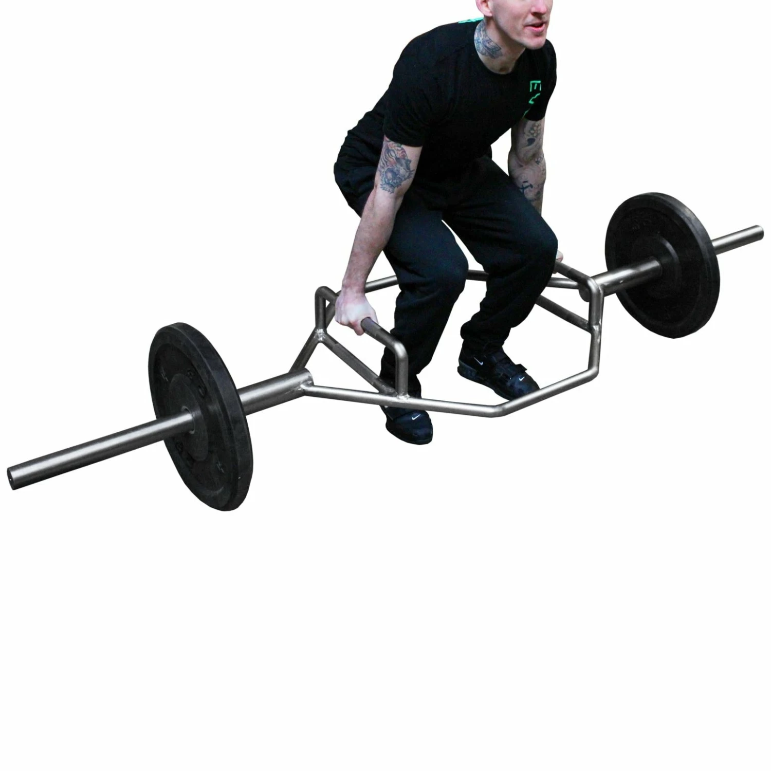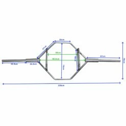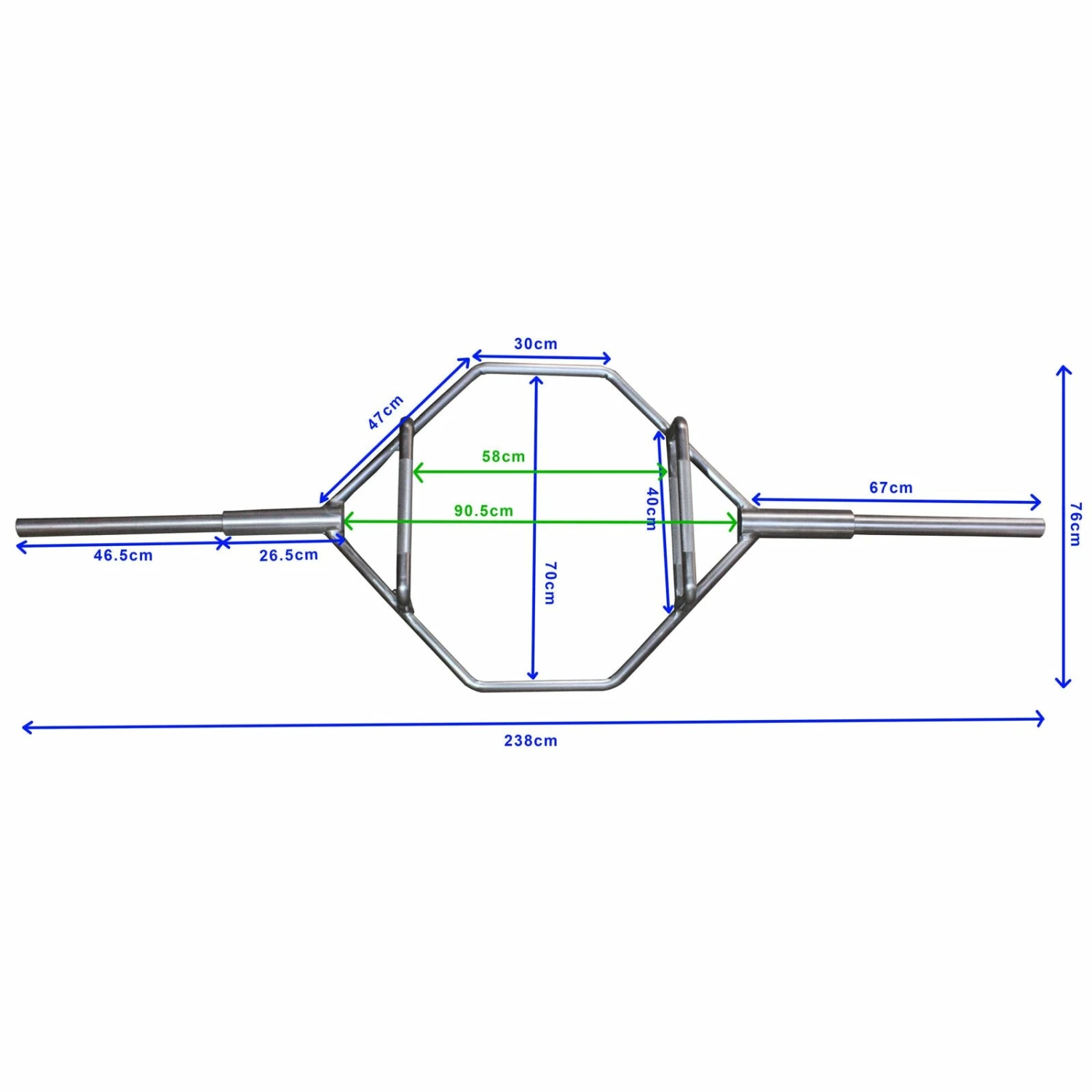 Diese äußerst robuste Hex/Trap Bar verfügt über lange Hantelscheibenauflageflächen und zwei Griffpositionen wodurch das Ziehen aus verschiedenen Höhen ermöglicht wird.